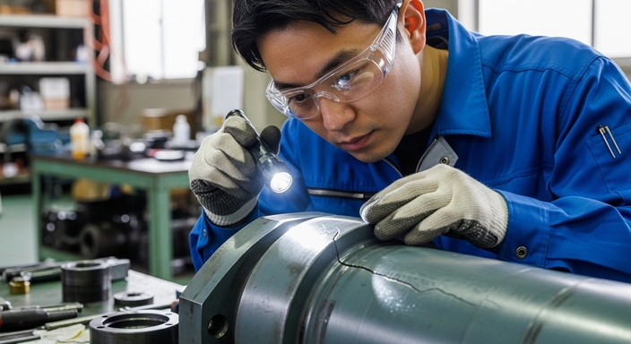 「シリンダーヘッドの小さなヒビが大破損を呼ぶ!」 投稿日時: 2025年10月24日 投稿者: cylinderkobo.com 油圧シリンダーのヘッド部にできた小さなクラックを見逃していませんか?そのわずかなヒビが、やがて大きな破損へとつながります。過剰な圧力や衝撃によって応力が集中し、金属が割れてしまうことがあるのです。点検の際は、表面の汚れだけでなく、ヘッド周囲の細かな亀裂までしっかり確認を!「小さなヒビだから大丈夫」と思った瞬間が、故障の始まりです。